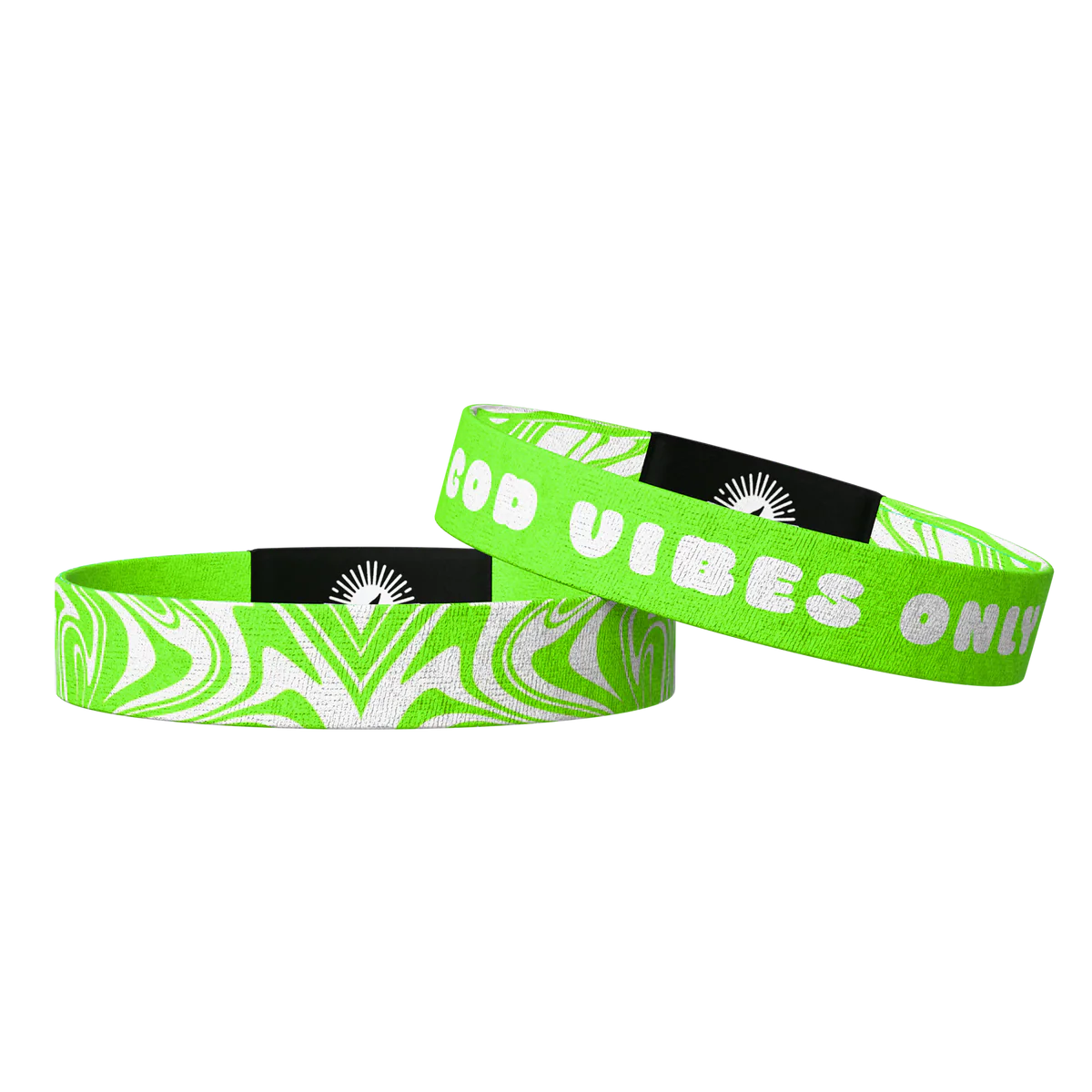 One side declares “God Vibes Only” in bold white lettering on a bright neon green background. The other side has a playful swirl design, a burst of energy that matches the life and joy we find in God. With a quick tap, a verse appears on your phone, encouragement for the exact moment you need it.